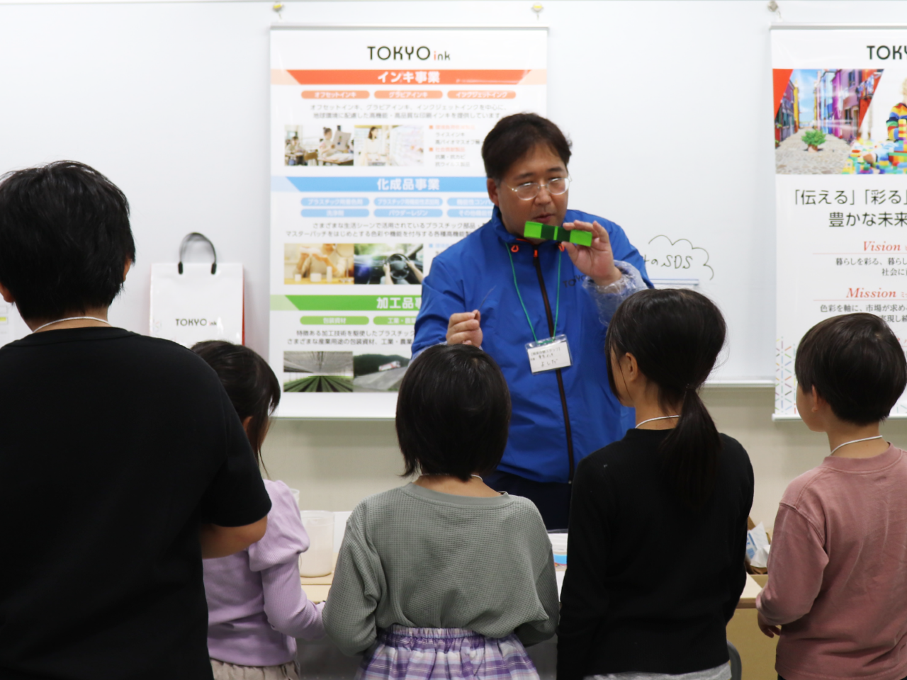 昨年度に引き続き、2024年11月に当社本社がある北区社会福祉協議会が主催した小学生を対象とした職業体験イベントに出展しました。このイベントは、様々な業種の企業が職業体験を通じて、将来のキャリアを考えるきっかけを提供するという夢のあるイベントです。 当社の体験イベントでは、インキの色合わせ体験や100ヒューテスター(色覚検査器)での色並べ体験等を通じて、新しい色彩を作る楽しさや調色技術の奥深さについて学んでいただきました。 当社は、今後も次世代を担う子どもたちの学びと創造力を育む機会を支援し、地域の皆様とともに成長していける活動を続けていきます。