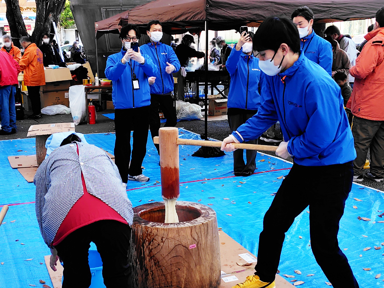 昨年に引き続き、2024年12月に当社本社がある東京都北区王子で、王子一丁目町会が主催する「チャリティ餅つき大会」に参加しました。 大会当日は、王子一丁目町会および王子地区周辺企業の皆様と協力し、チャリティ募金活動を行いました。また、その場でついたお餅や焼きそば、豚汁の販売をお手伝いし、たくさんの方々にご来場いただき、大盛況のうちに終了しました。 今回のイベントで集まった募金は、2024年の能登半島地震・能登豪雨で被災された石川県珠洲市の復興支援のために全額寄付されました。 当社は、今後も地域の皆様と協力し、被災地域の一日も早い復旧・復興の一助となれるよう、取り組みます。